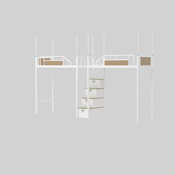(6) 步梯:骨架采用≥20mm*40mm*1.2mm 优质冷轧钢管焊接成型,横衬采用 ≥20mm*20mm*1.0mm, ≥1.5mm 厚钢质踏板,踏板下有隐藏储物空间。踏板内嵌 夜光防滑条有效防滑的同时在夜间可起到警示作用,避免踏空。