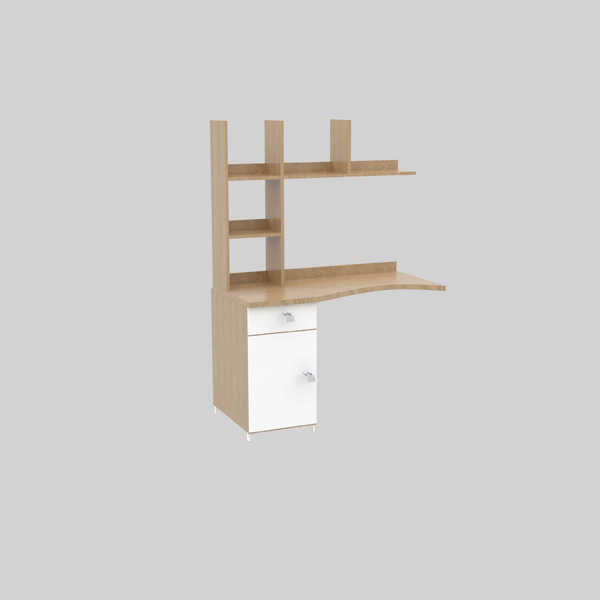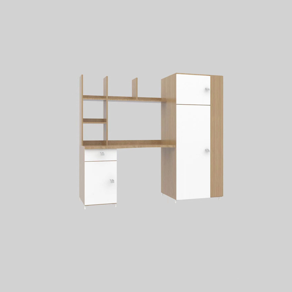 1)桌面板:采用≥25mm 厚度的 E1 级多层实木板(杨树、桉树木芯)制作,书桌 面预留穿线孔。
