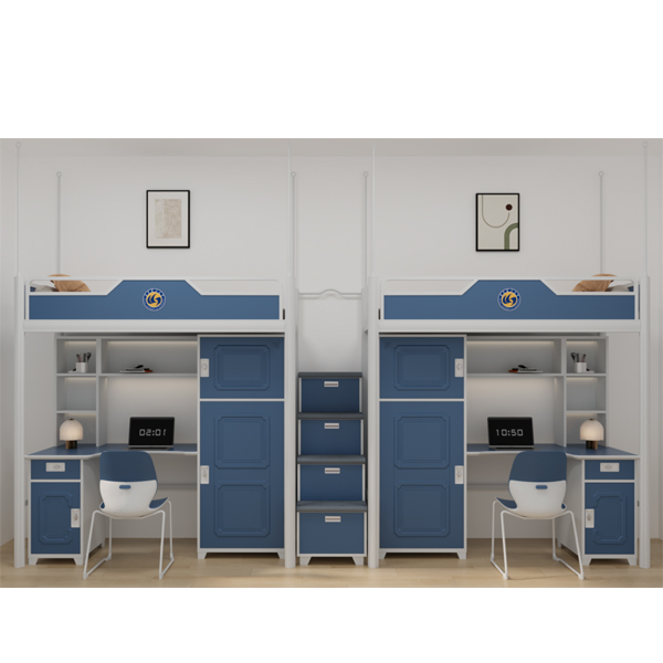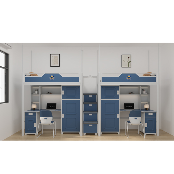 两人位连体公寓床(含铁床架、床板、钢制步梯及蚊帐架):L4700×W940×H2200mm(±3mm)